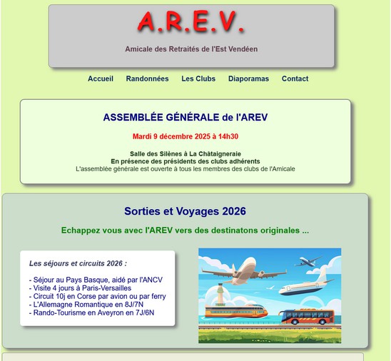 L’Université du Temps libre est adhérente à l’A.R.E.V. : association rassemblant des clubs de retraités de l’Est Vendéen et proposant des destinations aux programmes variées, à vocation culturelle et aux tarifs avantageux